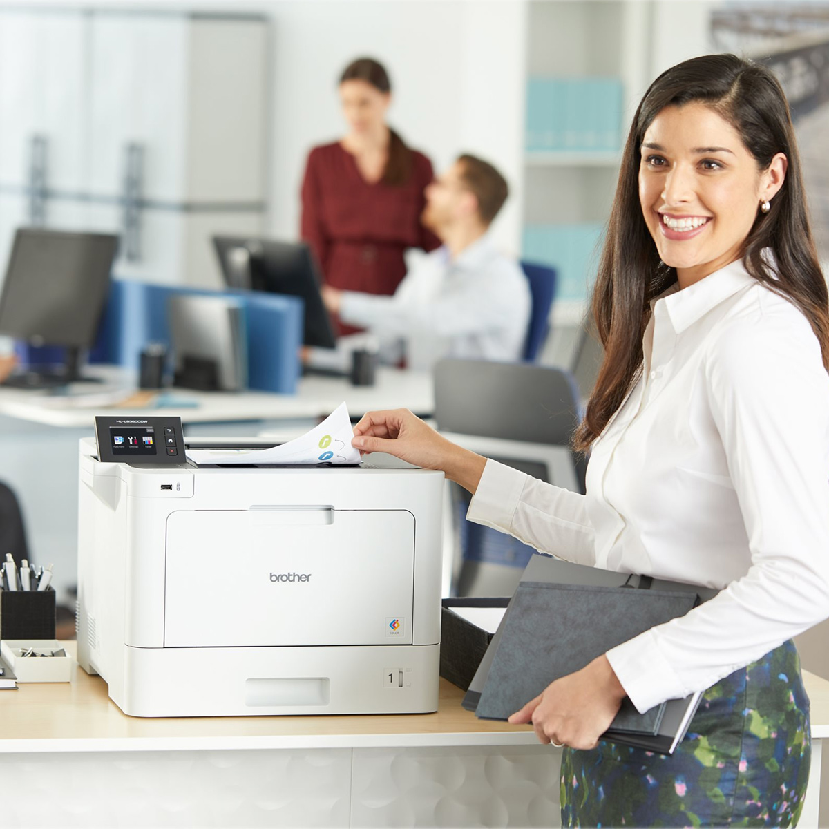 • Adjustable, 2.7″ color Touchscreen display. Offers easy menu navigation and printing from popular business cloud services including: DropBox, Google Drive™, OneDrive, and more.