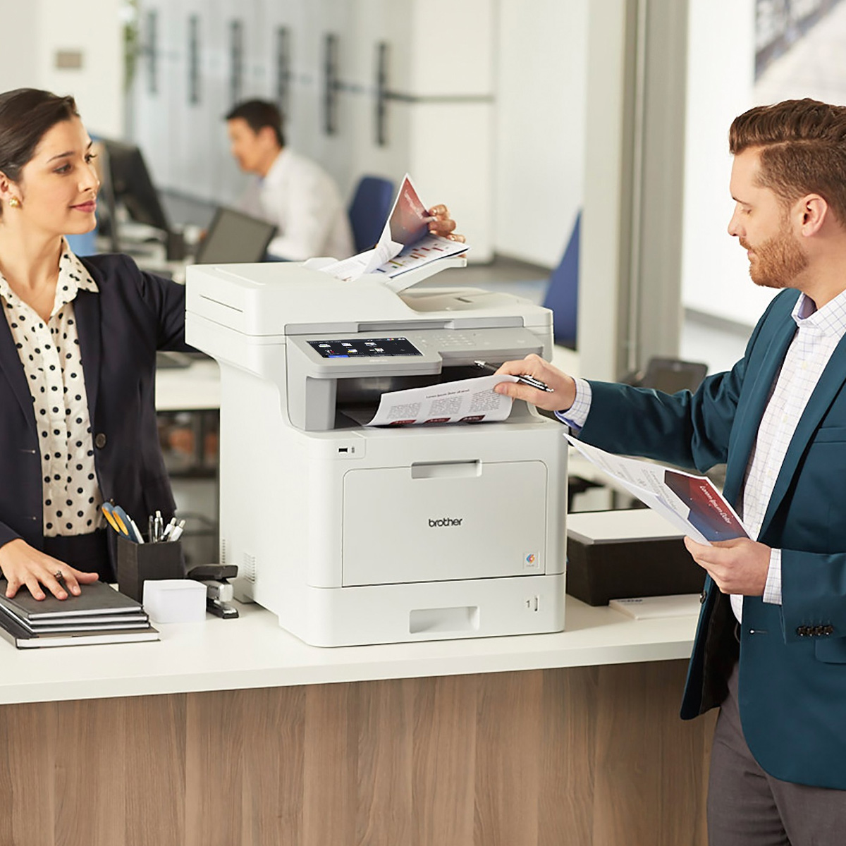 Designed to meet the needs of high-volume users, the MFC-L9570CDW Colour Laser Printer 4-in-1 lets you print with confidence, offering you speedy print and scan times and lower costs thanks to ultra high-yield toners. Add to that the enhanced security, intelligent mobile connectivity and expandable paper trays, and you have a printer that satisfies even the toughest demands in the office. Enhanced document scanning with a Dual CIS Automatic Feeder that holds up to 80 sheets, offers you a quick and simple way to scan directly to your preferred medium.
