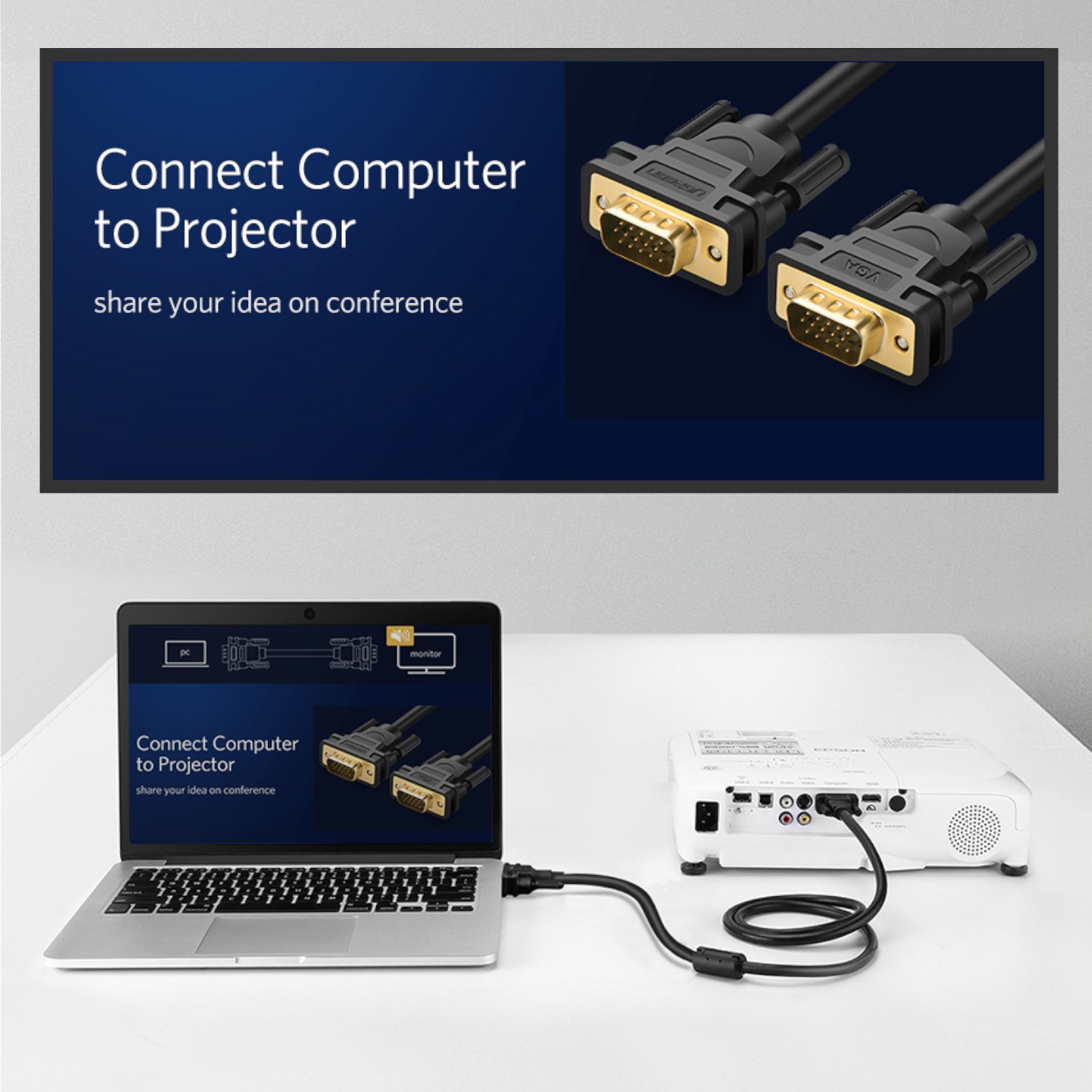The 1.5-meter VGA cable length provides ample reach, allowing you to connect devices without being restricted by space. Set up your workspace or entertainment system exactly as needed, without compromising signal quality with this UGreen cable.